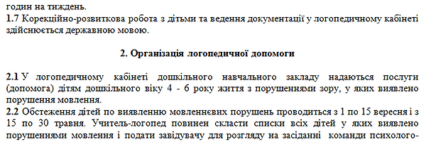 Учитель-логопед дошкільного навчального закладу здійснює корекційно-розвиткову роботу з розділів спеціальної програми для дітей із порушеннями мовленнєвого розвитку: