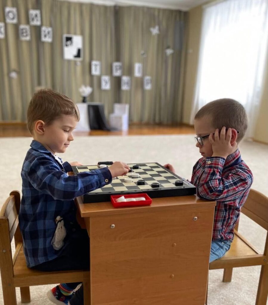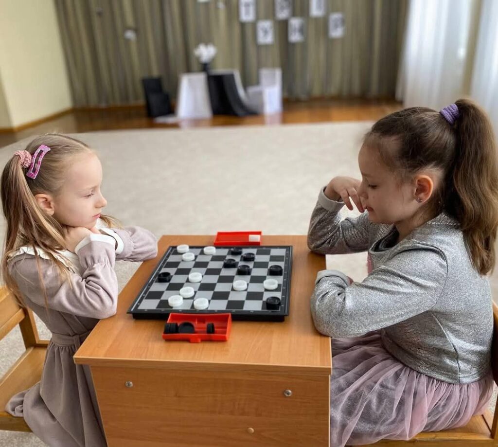 На світі ігор є багато.Та знає мама, знає тато,дорослі знають, знають діти:відомі шашки в цілім світі!