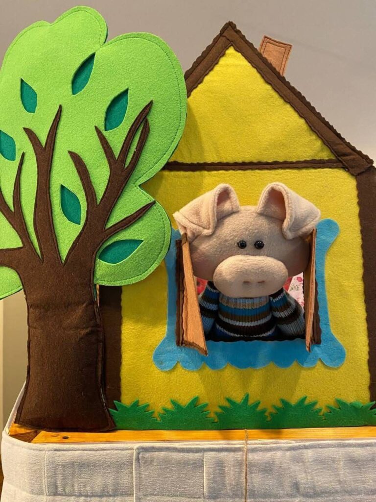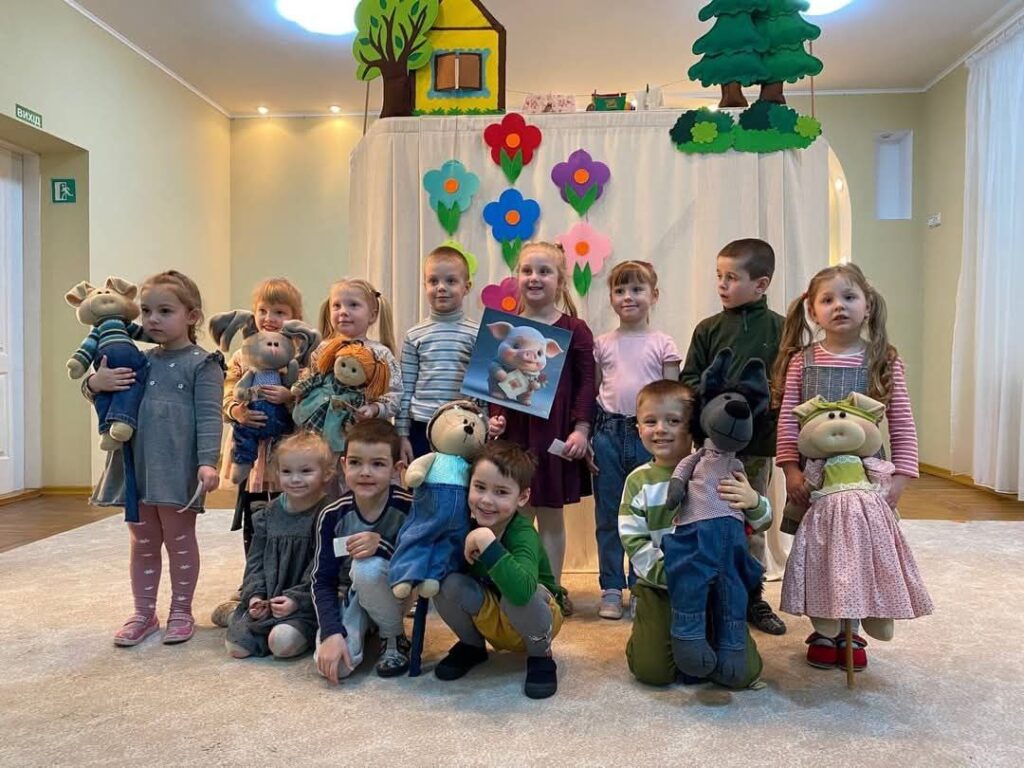 І не простий, а аматорський. Наші творчі працівники власноруч створили дивовижних ляльок, казкову ширму і показали малюкам детективну виставу “Поросятко Чок”!